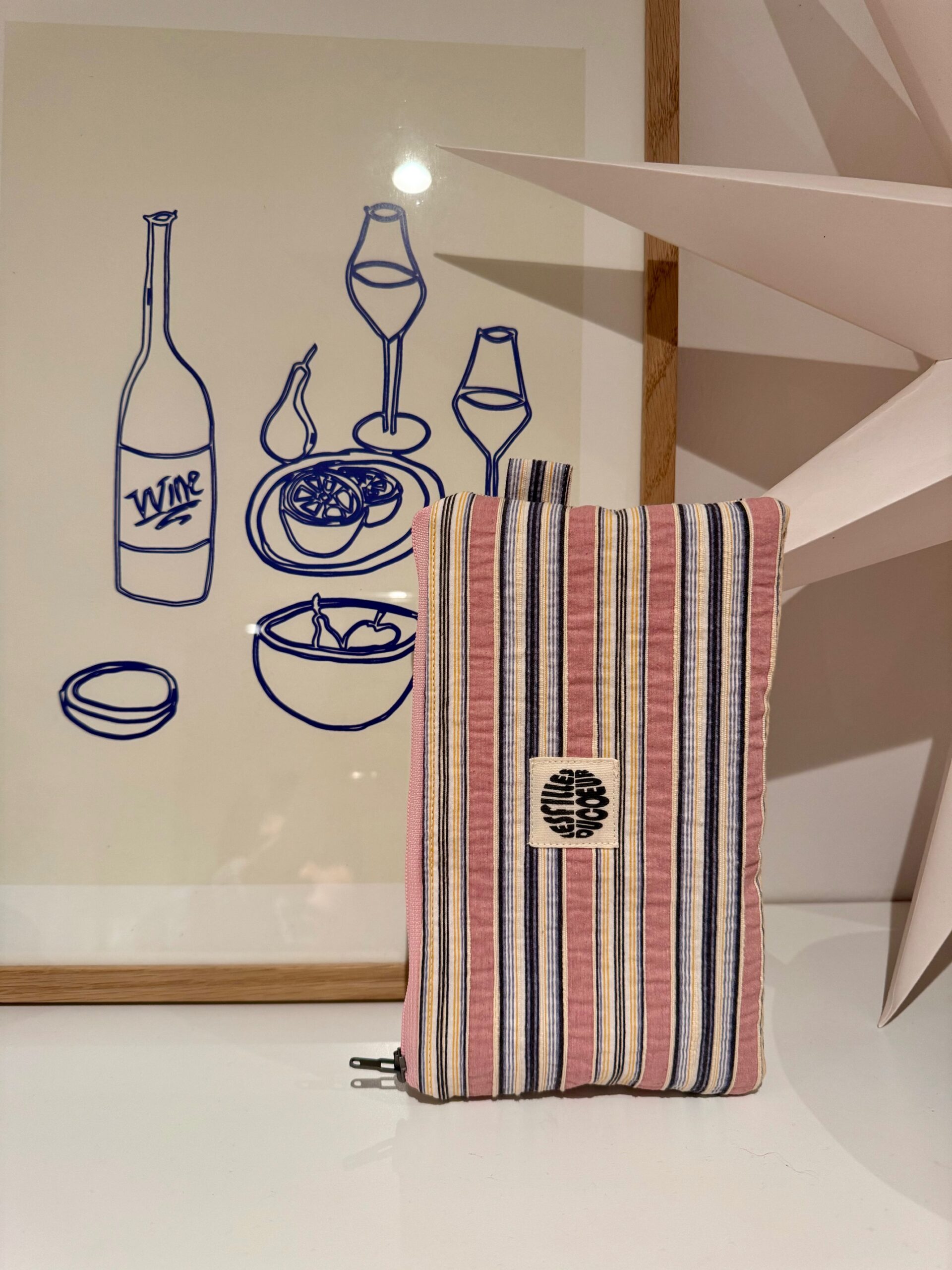 We love the “Thilda” pattern! Now also available as a pouch for daily use in your knitting basket or handbag: this padded pouch with a practical carabiner for more organization is handmade by us and measures 21 x 13 cm. Perfect for storing tape measures, scissors, pens, darning needles, and more! It features our logo patch on the front, and the inner fabric is pink cotton. (Stitch markers are for display purposes only and are not included)