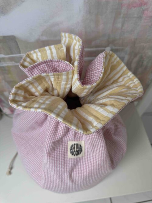 Pink project zip bag with brown embroidery