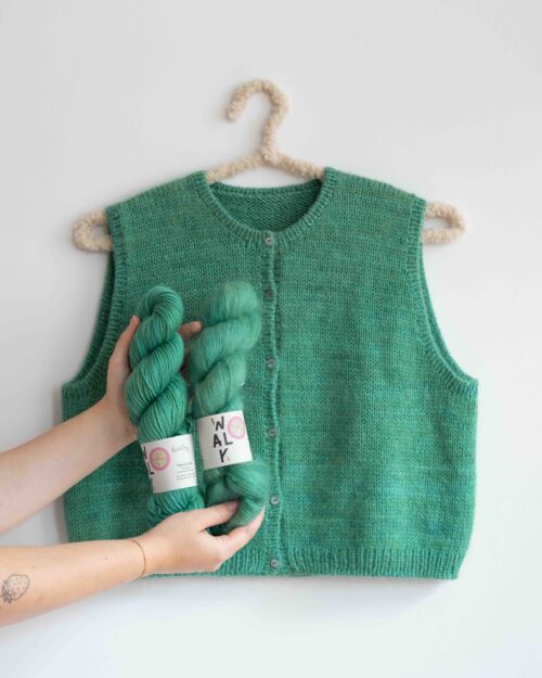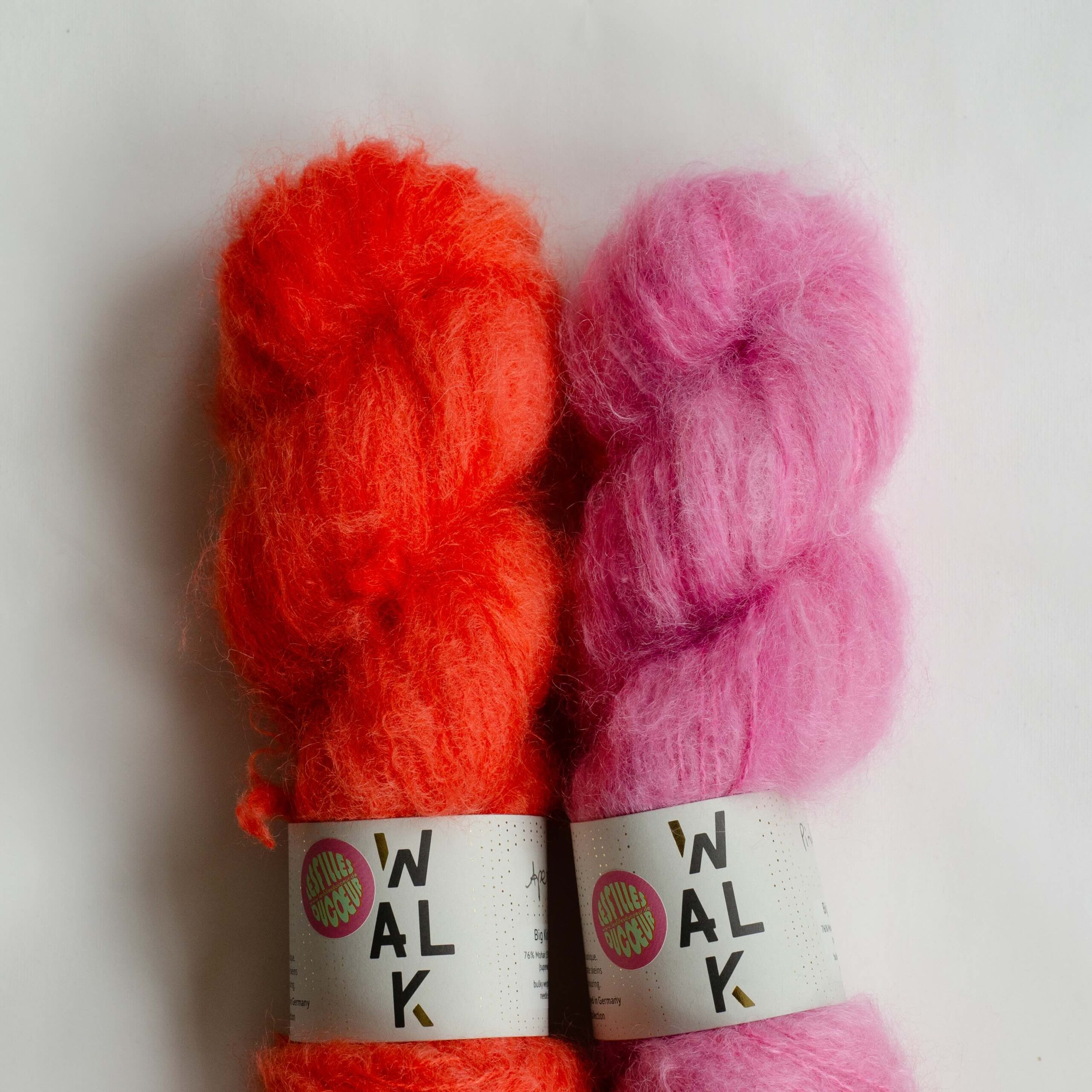 Das Garnset enthält Die Mohairwolle passend zum BONBON PULL(I)UNDER in deiner Wunschfarbkombi. Unser BONBON als Pullunder oder Sweater wird von oben nach unten mit einem Big Kid Mohair Faden von Walk Collection gestrickt. Er hat einen UBoot-Ausschnitt und ballonartige Ärmelabschlüsse. Die Strickanleitung umfasst beide Versionen: Pullunder + Sweater