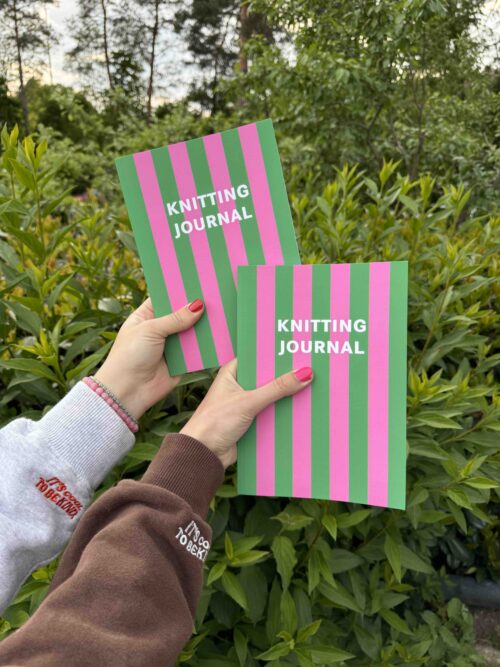 Bestickter Baumwollbeutel mit Reißverschluss in rosa mit braunem Stick „Hot People Knit“ und „LESFILLESDUCOEUR“ Schriftzug auf der Rückseite – perfekt um kleinere Strickprojekte wie Mützen oder Scarfs aufzubewahren.