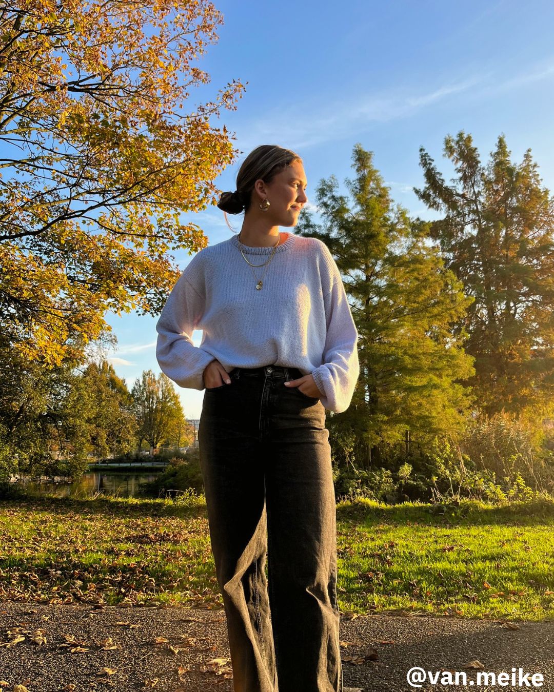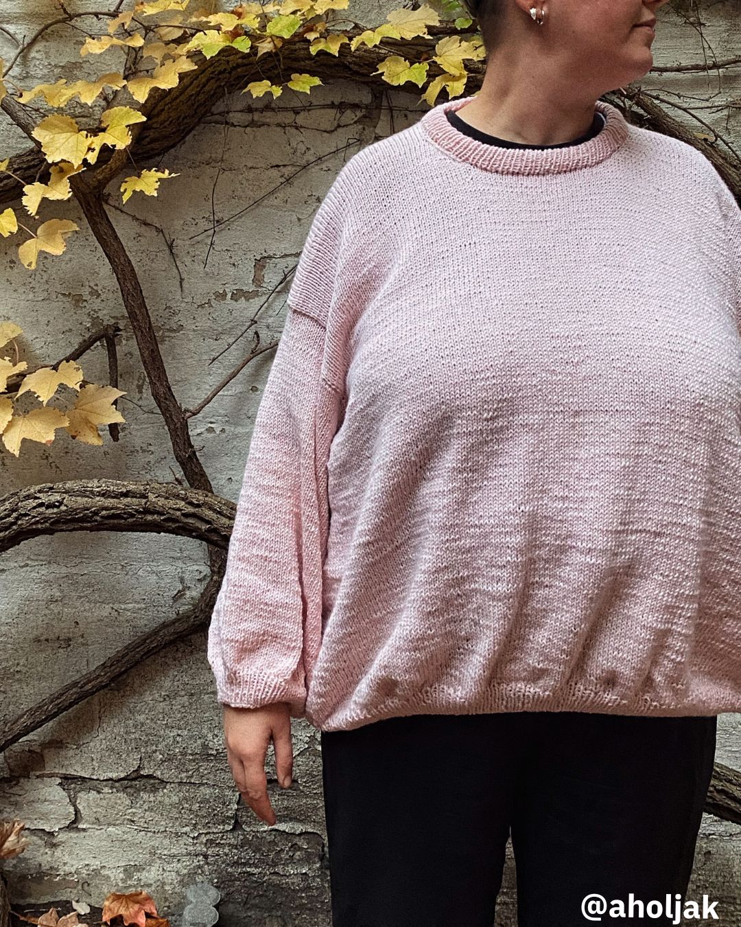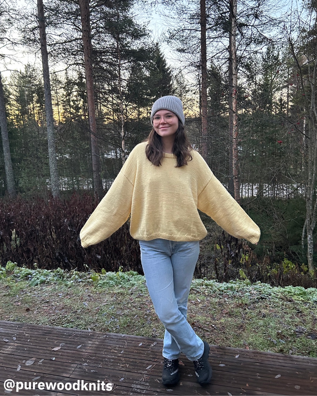 Der Sweater sollte einen Bewegungsspielraum (positive ease) von 35 – 40 cm zu deinem Brustumfang haben. Je nachdem, wie oversized dein Sweater ausfallen soll, rechnest du 35 – 40 cm zu deinem Brustumfang dazu und schaust, zu welcher Größe der berechnete Umfang passt.